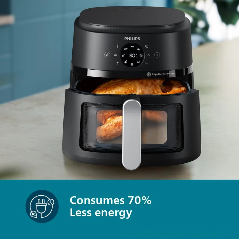 ظرفیت پخت این هواپز ۶ لیتر بوده و برای تهیه غذای کامل یک وعده خانوادگی کاملاً کافی است. طراحی دستگاه به گونهای انجام شده که با وجود ابعاد ۴۰.۴×۳۰.۹×۳۰.۸ سانتیمتر، فضای زیادی از آشپزخانه را اشغال نمیکند. وزن ۴.۳ کیلوگرمی دستگاه نیز حمل و جابهجایی آن را آسان کرده است. وجود پنجره شیشهای روی محفظه، یکی از نقاط قوت مهم هواپز فیلیپس NA231/00 به شمار میرود که امکان نظارت لحظهای بر فرآیند پخت را بدون نیاز به باز کردن دستگاه فراهم میکند.